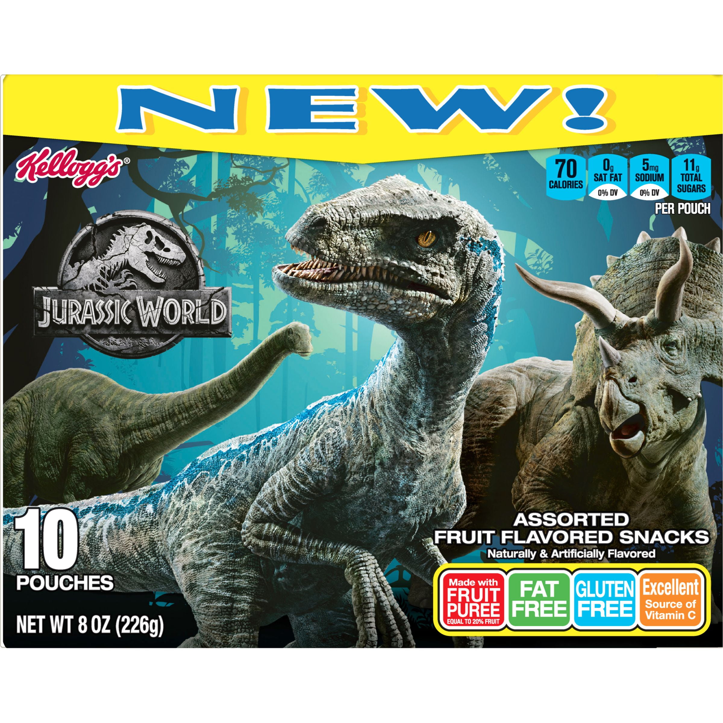 Kellogg S Jurassic World Assorted Fruit Flavored Snacks Pouches 8 Oz 10 Ct Walmart Com